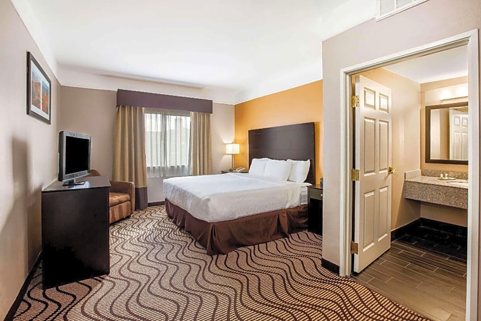 Providing free toiletries, this suite includes a private bathroom with a bath, a shower and a hairdryer. The suite features carpeted floors, a seating area with a flat-screen TV with cable channels, air conditioning, a tea and coffee maker, as well as a wardrobe.